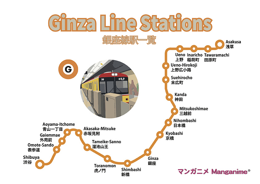 The Ginza Line is a railway line operated by Tokyo Metro that runs from Asakusa Station in Taito Ward to Shibuya Station in Shibuya Ward, Tokyo.